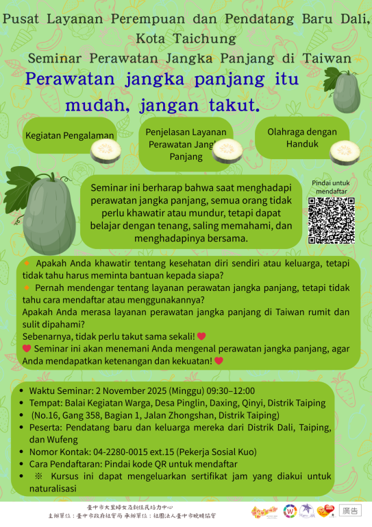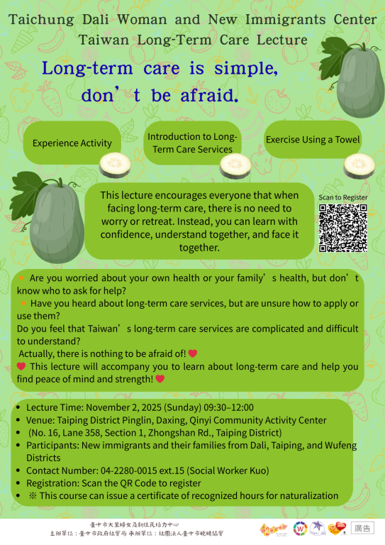 ✨ 承辦單位:臺中市大里婦女及新住民培力中心(社團法人臺中市晚晴協會承辦)