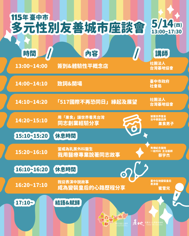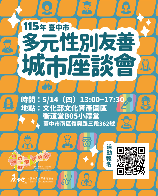 為響應國際不再恐同日,本局將於5/14(四)辦理「臺中市多元性別友善城市座談會」✨